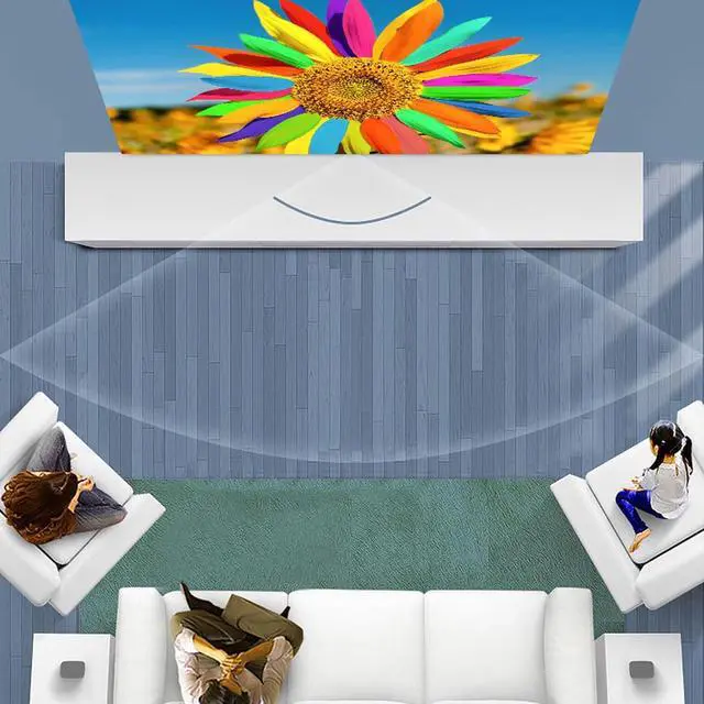 The 16:9 rectangular aspect ratio is suitable for home use, watching movies and TV. The 4:3 square aspect ratio is suitable for office work, meetings and teaching
