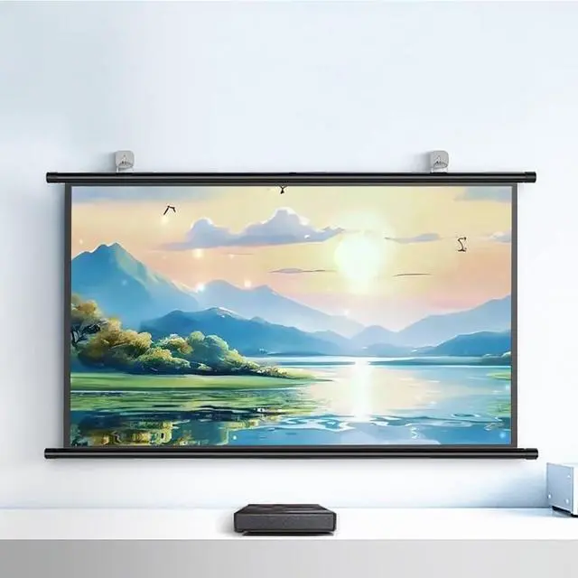 Home theater projection screens can be installed on walls or ceilings. The screen comes with a movable hanging ring for easy installation.