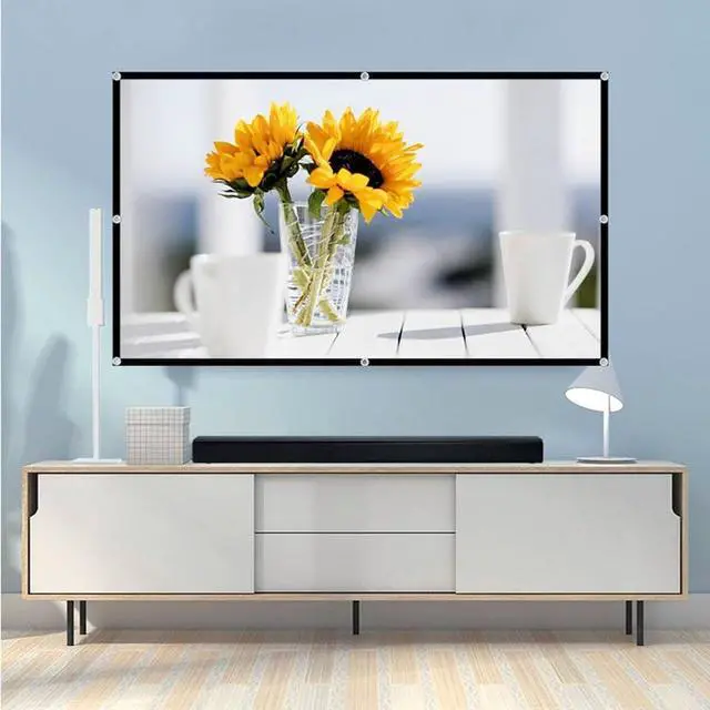 The 60-inch projector screen is made of polyester, which can provide you with clear images, bright colors