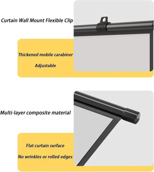Easy to install: Our projection screen is easy to install and can be mounted on walls and ceilings, not only keeping the screen stable but also providing a better viewing experience.