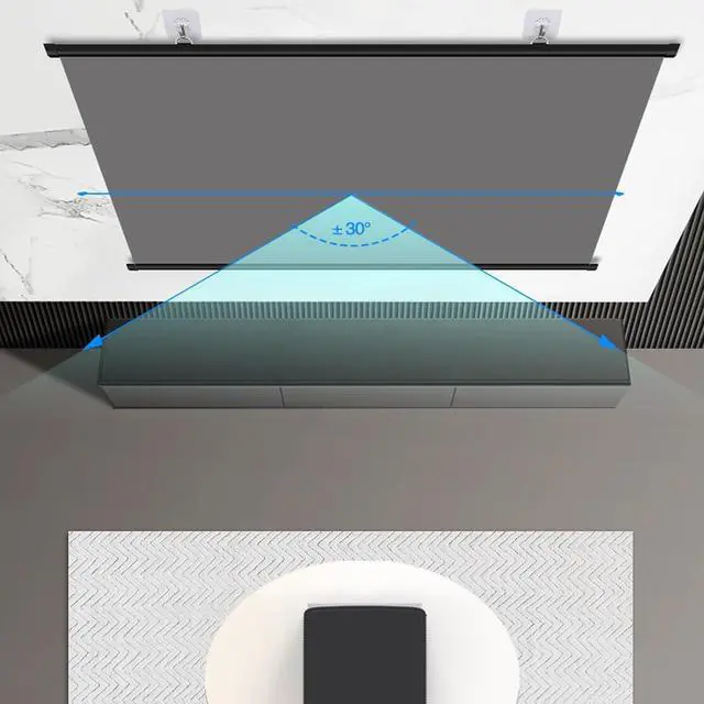 The golden 30° viewing Angle is the best for eye protection. The anti-light screen should be projected from the front, and must not be projected from the side or hanging. When projected from the front at 30°, the picture quality will not turn white, and the high-definition visual presentation effect will be more stunning