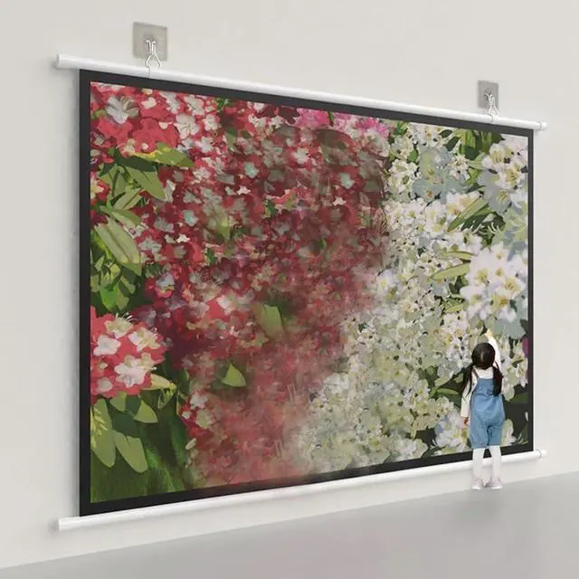 Flexible installation options: The projection screen can be installed on the wall or ceiling at will, and the hanging ring can be moved left and right, allowing you to freely adjust the distance as needed, allowing you to flexibly choose the ideal configuration that suits you. .