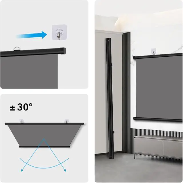 The golden 30° viewing Angle is the best for eye protection. The anti-light screen should be projected from the front, and must not be projected from the side or hanging. When projected from the front at 30°, the picture quality will not turn white, and the high-definition visual presentation effect will be more stunning
