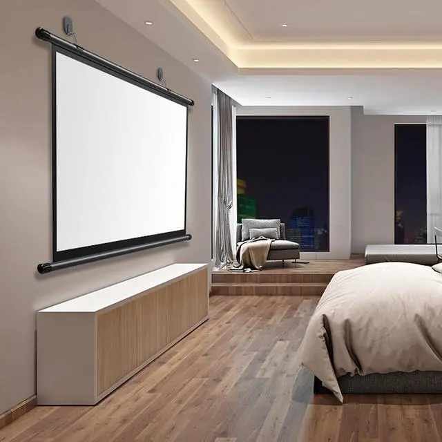 ? The anti-wrinkle movie screen can be installed on the wall or ceiling at will. The hanging rings can be moved left and right as needed, and the spacing can be adjusted freely, allowing you to flexibly choose the ideal setting that suits you.