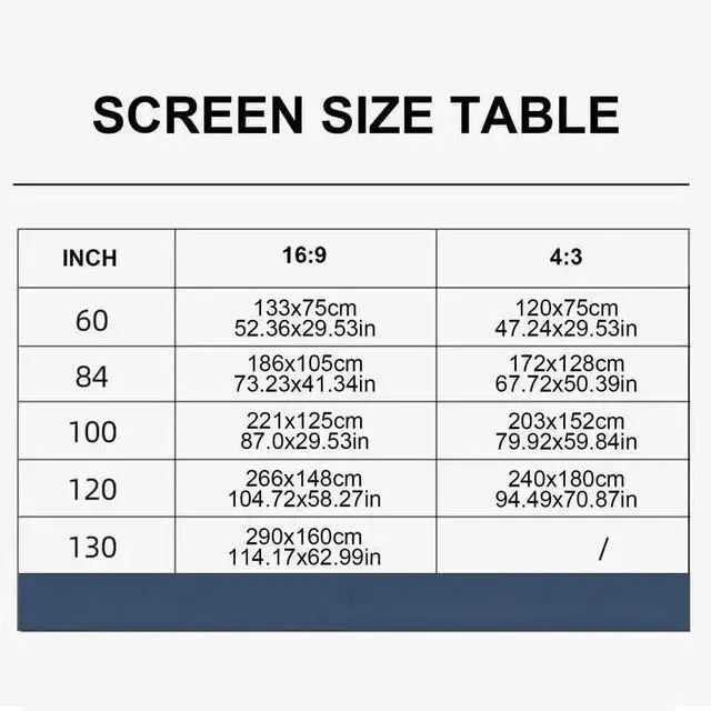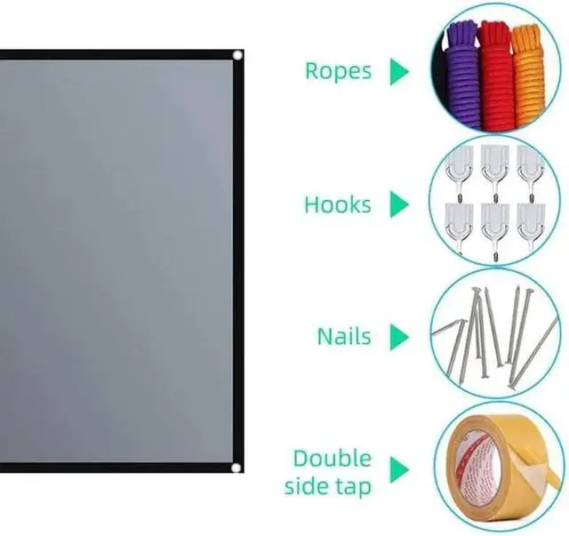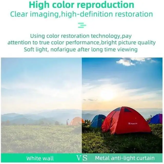 You can watch movies without turning off the lights, 4K resolution, delicate picture quality, soft light, foldable into small size, 16:9 screen format, easy to install.