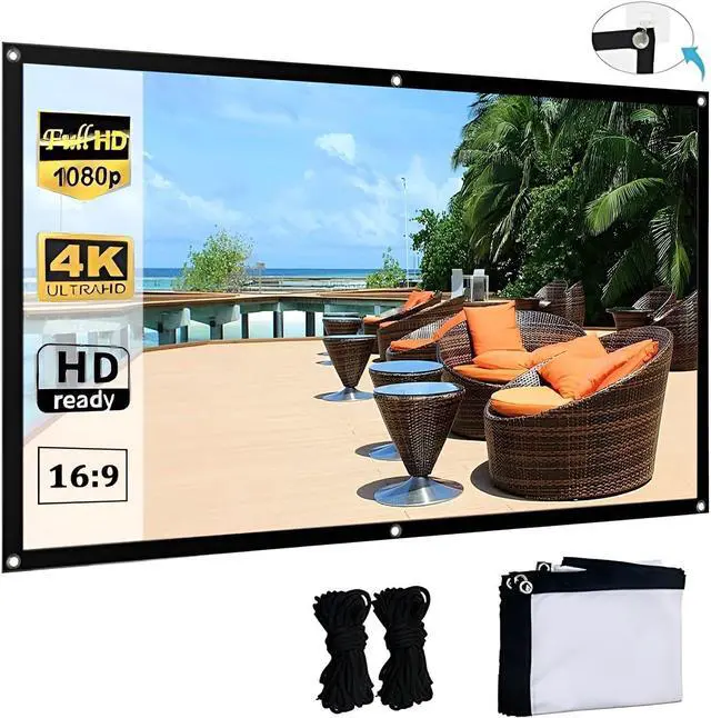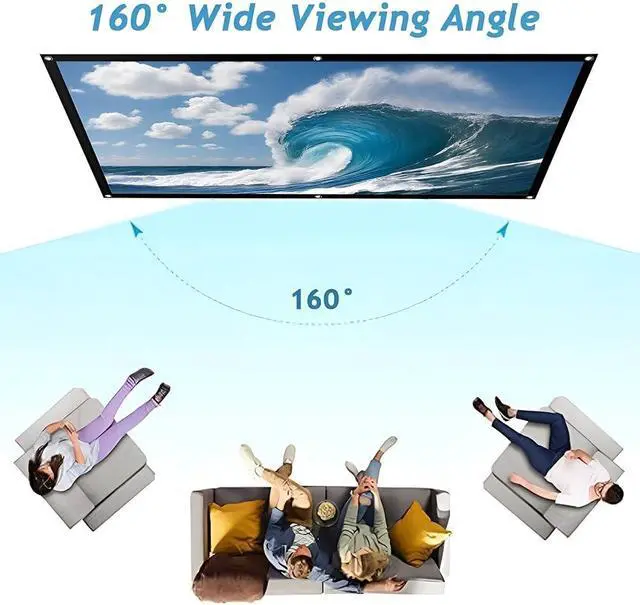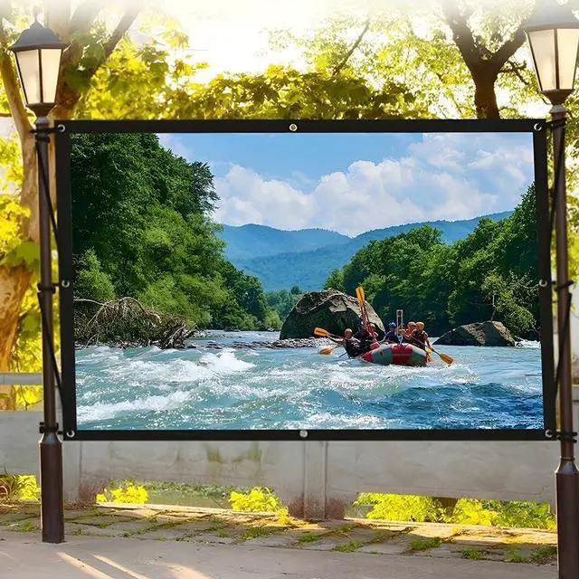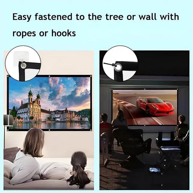 Easy Installation: The portable projector screen is equipped with metal mounting holes around the perimeter, allowing you to easily attach it to a wall or stand using hooks, ropes, brackets, nails, or dou-ble-sided tape. Enjoy watching football, basketball, or other sporting events with friends on the big screen in your garden or outdoors. Supports dual-sided projection