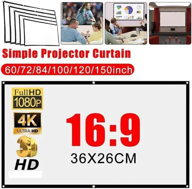 Projector Screen Screen 16:9 Simple Projector Curtain Portable HD Display Screen Home Cinema Theater Movie Projection Curtain Smart Home(150 inch)