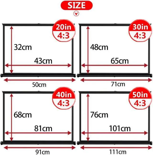 Wide Range of Uses: This projection screen has a format of 4:3, is small and portable, and can be used in workplace offices, teaching training, and can also be used as a desktop learning companion for children