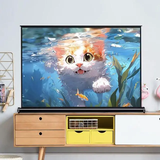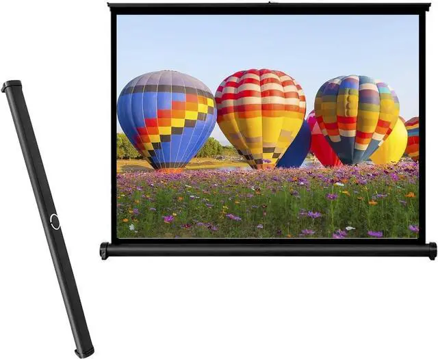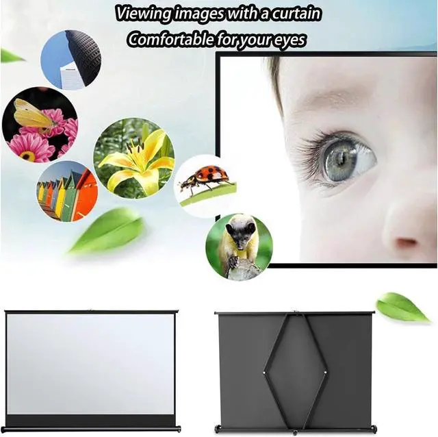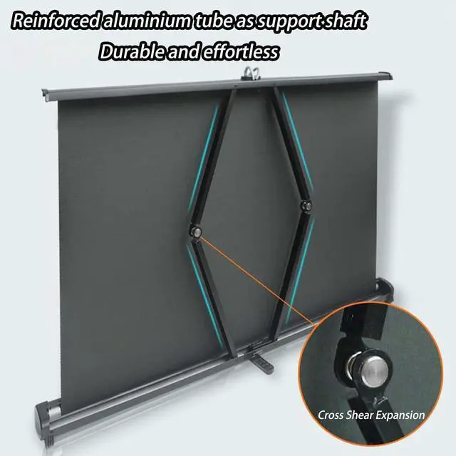 A freestanding projection screen that can be placed on a table/desk or on the floor. Easy installation, just place and pull up the screen to enjoy the big screen. The retractable projection screen can be easily pulled out when in use and retracted back into the screen housing when not in use, and can be installed in just 1 minute.