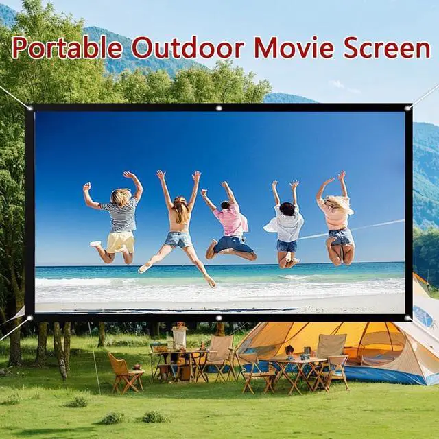 Easy to carry: The projection screen can be folded and stored in a storage bag, making it easy to carry. It is an ideal temporary screen for indoor and outdoor use. The reinforced sealing ring design allows for easy hanging using hooks, ropes, or other tools