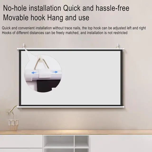 • HD Projector Screen: This projection screen has a 16:9 screen format, and the movie screen supports 3D, Full HD images, bringing you excellent visual enjoyment. You can choose the most comfortable angle to watch the projection. It will not be crowded to watch movies with family, neighbors or friends.
