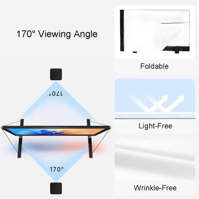 White fabric, the movie screen can be easily folded, wrinkle-resistant, light-resistant, front and back projection, 170 viewing angle, 16:9 support 4K Ultra-HD 3D effect