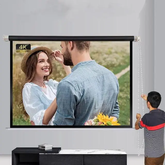 The portable projection screen is conveniently equipped and lightweight, making it easy to pull up to save space when not in use. Ideal for both indoor and outdoor use.