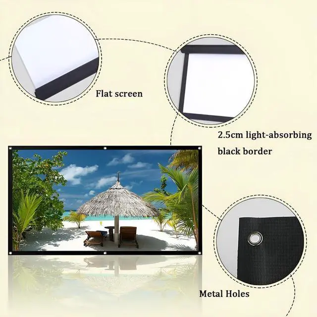 High-Quality Fabric: The projection screen is made of white fiberglass, resulting in a smooth, delicate surface and clear projections with vibrant colors, enhancing your viewing experience
