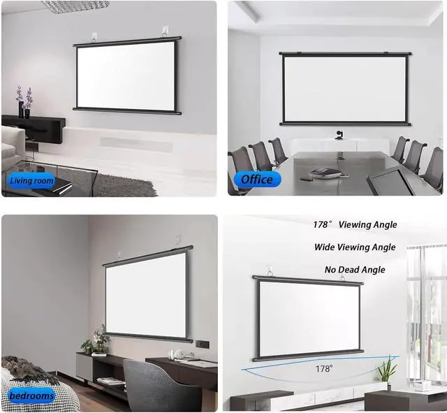 Ultra-wide viewing angle: The projection screen has an ultra-wide viewing angle of 178°, allowing clear display from every angle. Soft colors: long-term use will not cause eye fatigue.