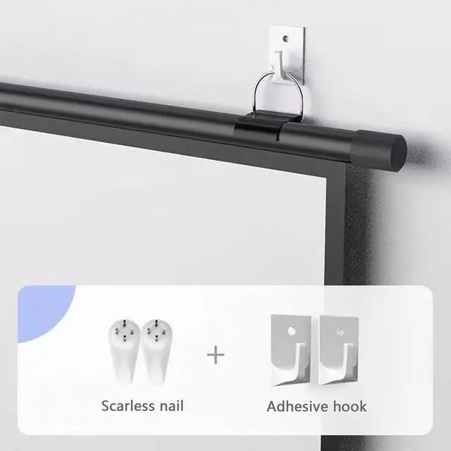The movable hook can be used immediately after hanging, with no installation restrictions. The two hanging rings can slide freely left and right. It is also equipped with a sticky hook and a traceless nail for quick and convenient installation