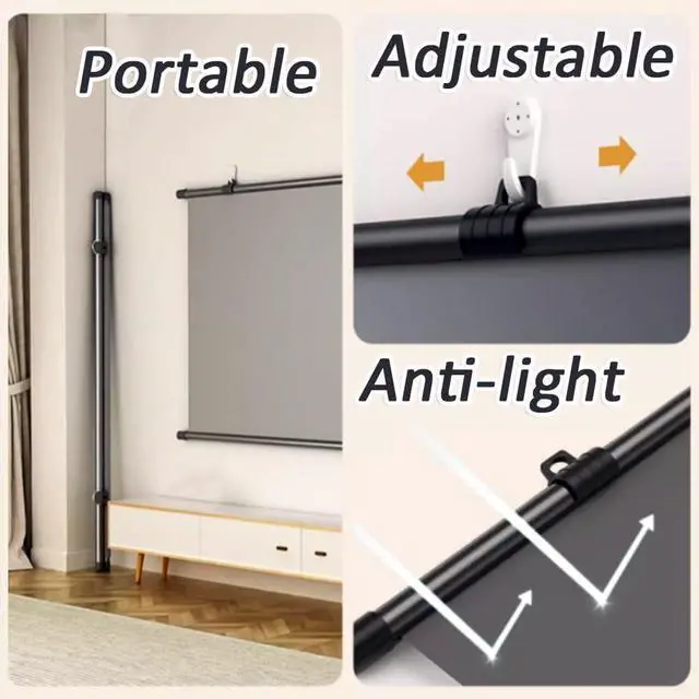 Clear & Vibrant Image Quality The 16:9 portable projector screen features an anti-glare design, delivering crisp and clear images for a cinematic experience.