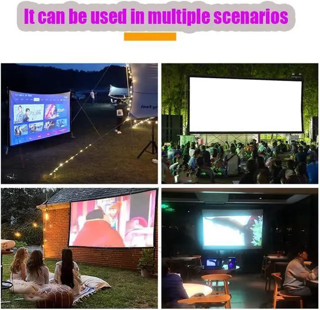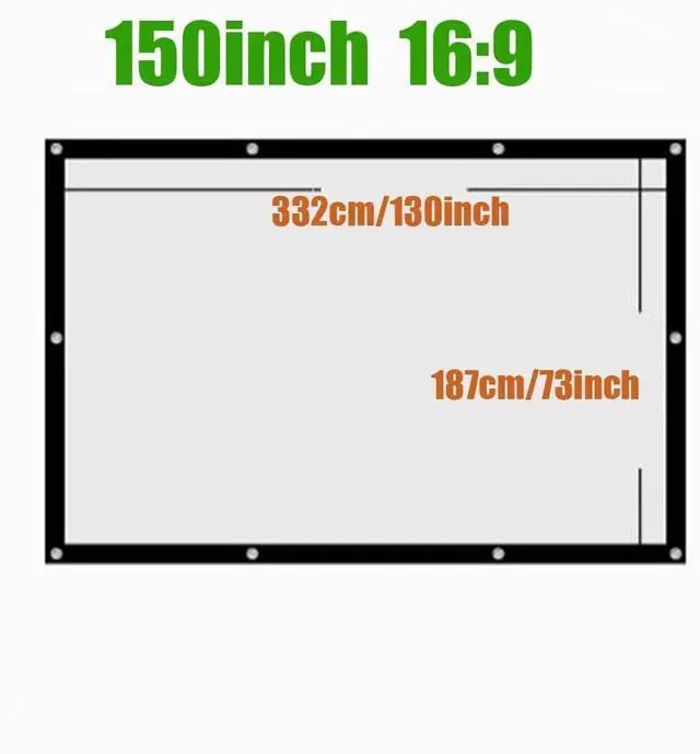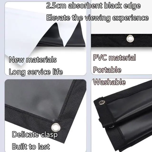 Multiple size selection: 84 inches to 150 inches are available to meet your projection needs in different occasions, and can be used in home theaters, public displays, conference presentations, outdoor parties and other occasions