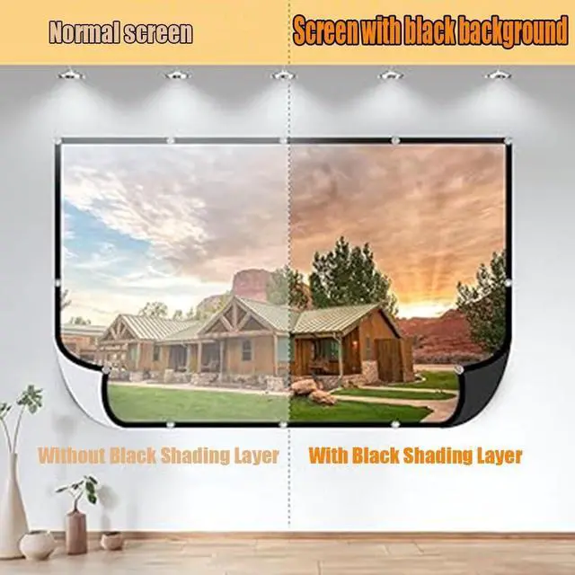 Easy to set up: The projection screen can be fixed with ropes, nails, hooks and other accessories, installed on the wall or outdoors, and can be folded and placed under the bed, closet or sofa when not in use, without taking up space