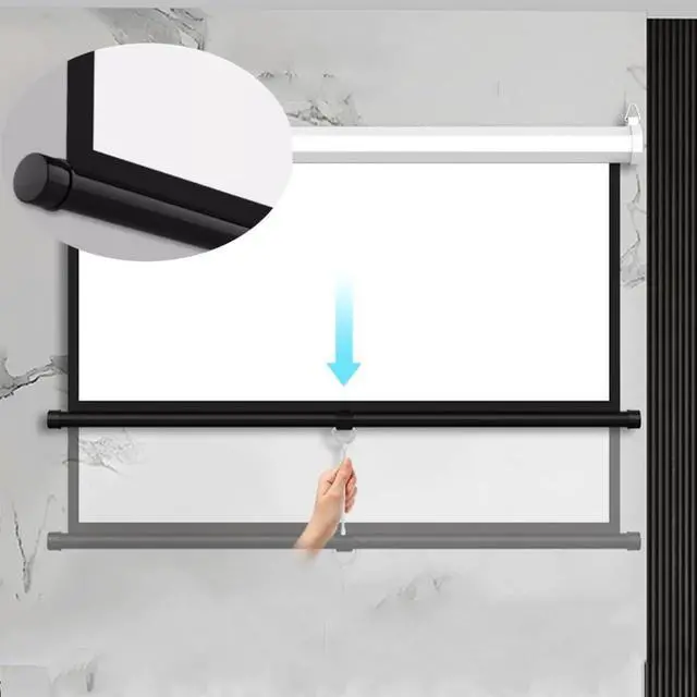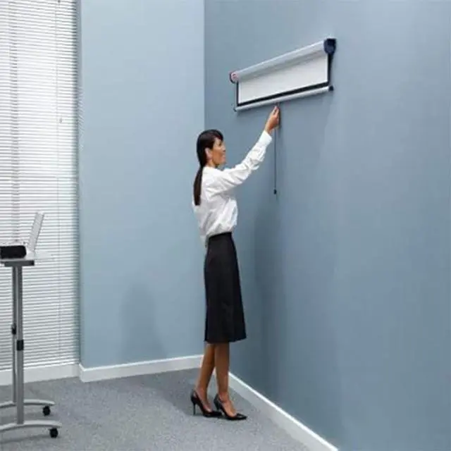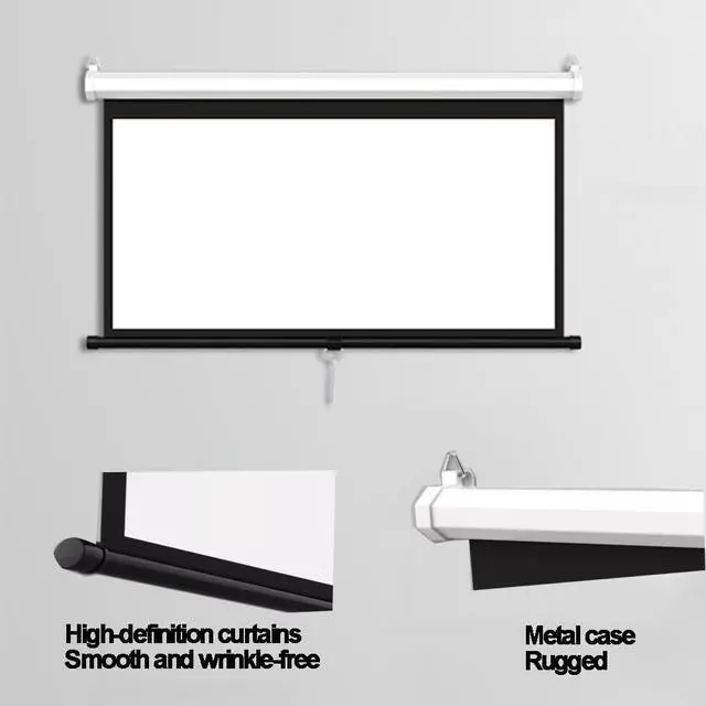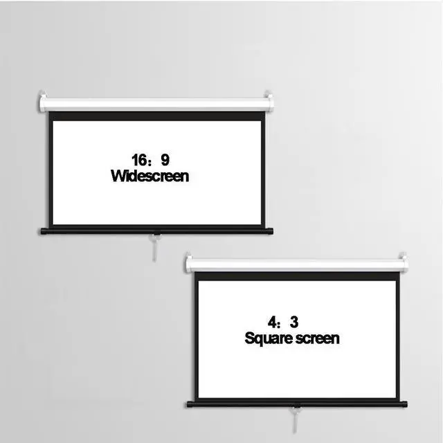 The wall-mounted projector screen has two screen formats: 4:3 and 16:9, 16:9 is rectangular, suitable for home theater, playing games, singing, and 4:3 is square, suitable for business office, school teaching and other workplaces.