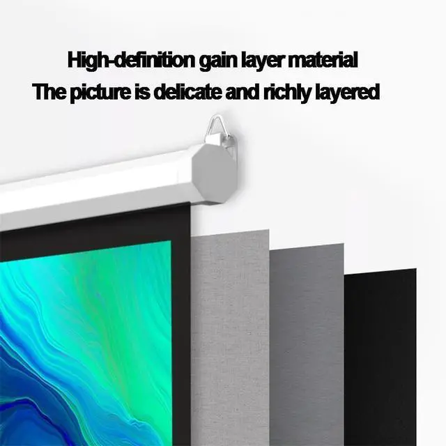 The manual projection screen is made of high-quality white fiberglass material, composed of 4 layers of composite materials, and the optical coating on the surface makes the color reproduction realistic, and the anti-light transmission effect is good, bringing you and your family a high-definition visual experience.