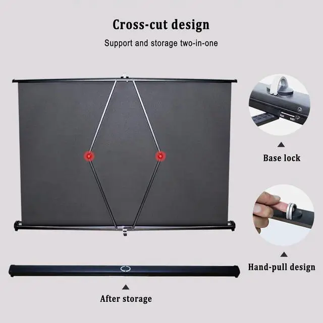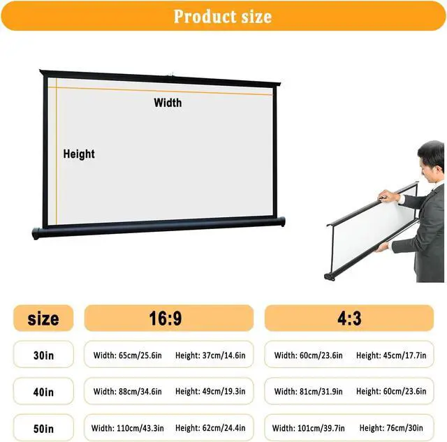 Thickened material: Tabletop Projection Screen, The projection screen made of white fiberglass material has a clear projection effect, the screen surface is diffusely reflected, and there is no visual fatigue after long-term viewing. The field of vision is wide and you can watch movies with family and friends