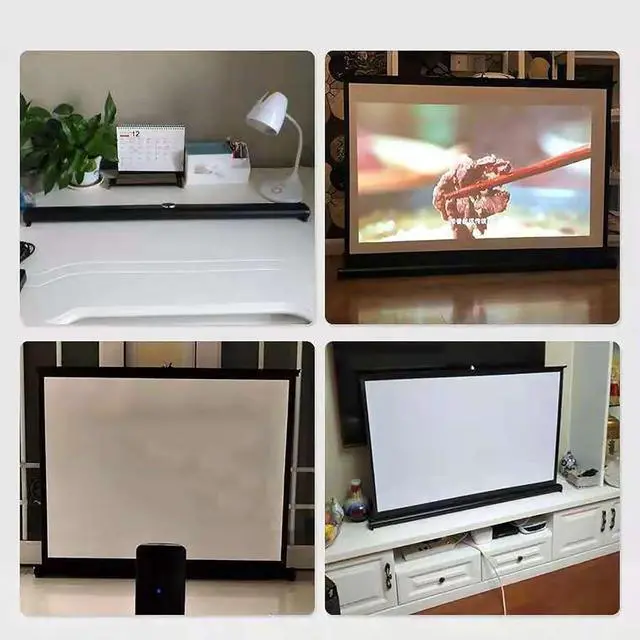 Small projection screen: 4:3, 16:9 Adjustable Projection Screen, Made of white fiberglass material, the projected image is clear, the color is truly restored, and the black border plays the role of color balance and focus projection, so you can enjoy the cinema-like picture immersively