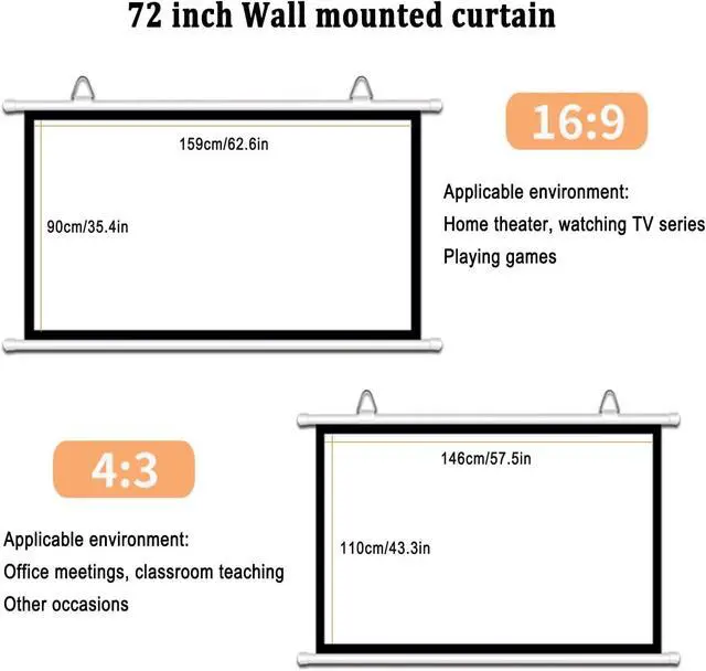 Widely used: HD Projector Screen Manual Pull Down Projection Screen, With a 4:3/16:9 screen format, it can meet your needs whether it is an outdoor movie night, an indoor viewing party, or a professional presentation in the classroom and office