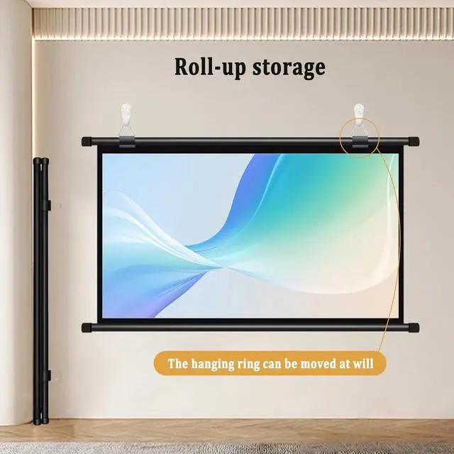 Roll-type design: The manual projector screen is easy to carry and store, lightweight, easy to roll up, and does not take up extra space after storage, making it very suitable for indoor and outdoor use