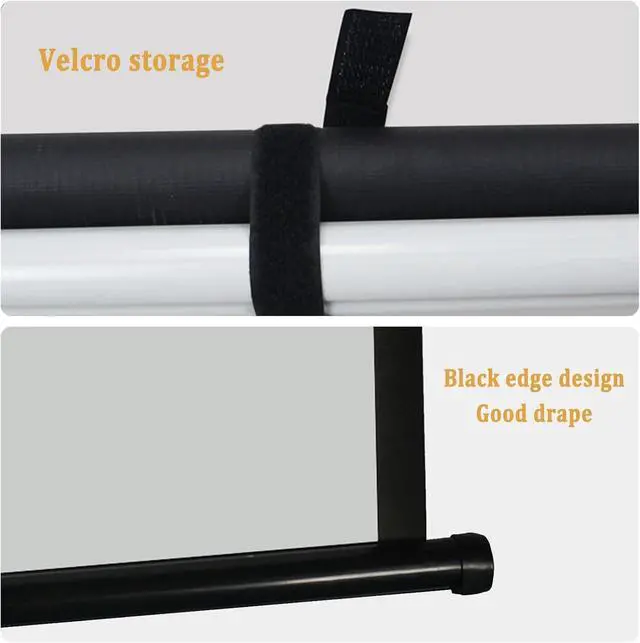 Easy to store: The thickened alloy iron pipes used at both ends have strong load-bearing capacity and are not easy to deform. They can also ensure that the projection screen is not easy to shake during use, and make it easier to store the projection screen