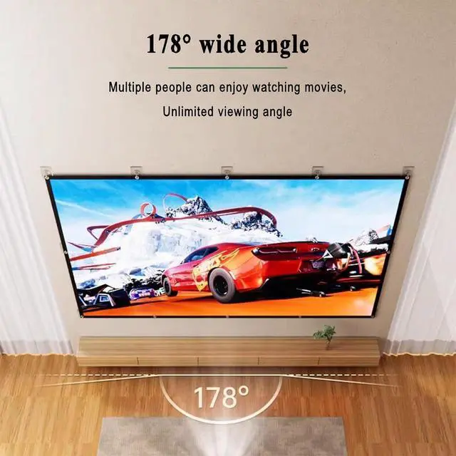 Multi-angle viewing: Hanging Projection Screen HD Wall Mounted Movie Screen, 178° wide viewing angle, ultra-large screen design, whether it is a conference presentation or outdoor camping, family viewing, it can provide the best viewing experience for different viewing occasions