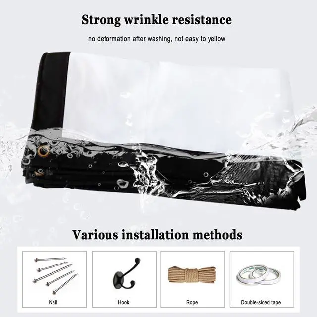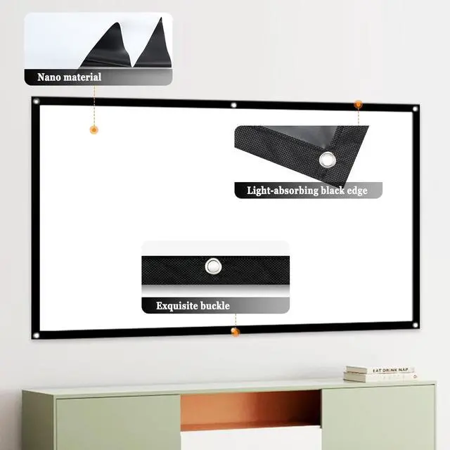 Nano projection screen: Video Projection Screen Home Theater, The projection screen is made of a new nano material, which is not easy to wrinkle, has excellent image display effect, high reflectivity, can display high-resolution and high-saturation images, and further enhances the projection effect