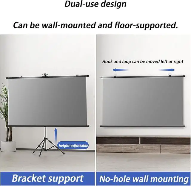 One-screen dual-purpose design, can be wall-mounted or directly supported on the floor. The curtain is stored in a scroll style with a detachable bracket for easy disassembly and assembly. It is portable and easy to store without taking up space.
