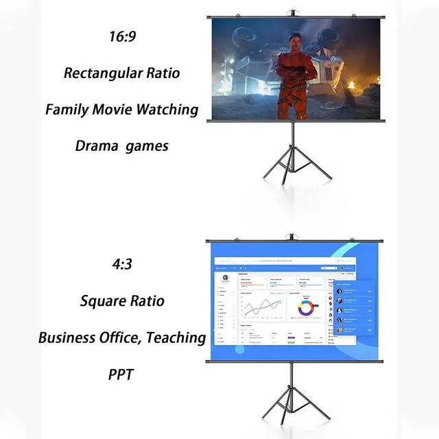Portable anti-light bracket screen: The screen adopts a special anti-light coating, supports 4K high-definition picture quality, and has true restoration of borderless colors. It has a full screen design with no black edges and full three-dimensional colors, creating an immersive viewing experience and giving the image More space for play, watching movies without being distracted by drama