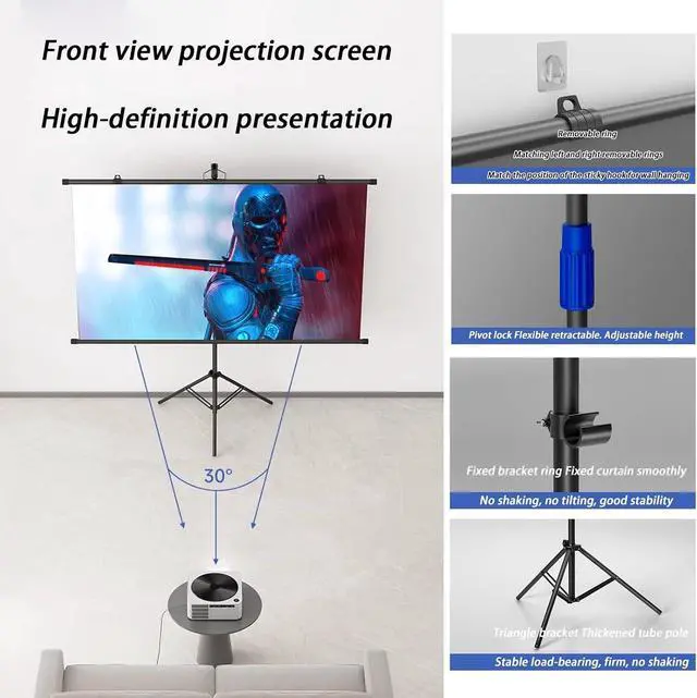 Portable anti-light bracket curtain: The curtain uses a special anti-light coating to make the light diffusion more even, soft, full, and highly light-resistant. It can achieve direct projection during the day, 2.8 times brightness gain, supports 4K high-definition image quality, and borderless colors. True restoration