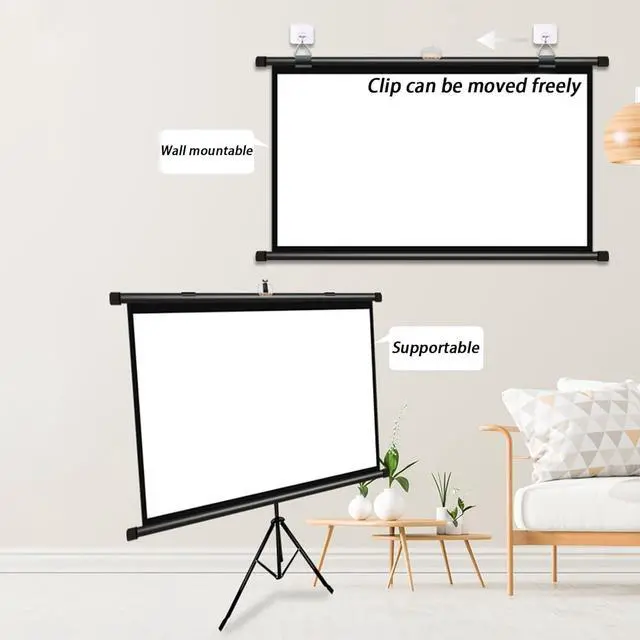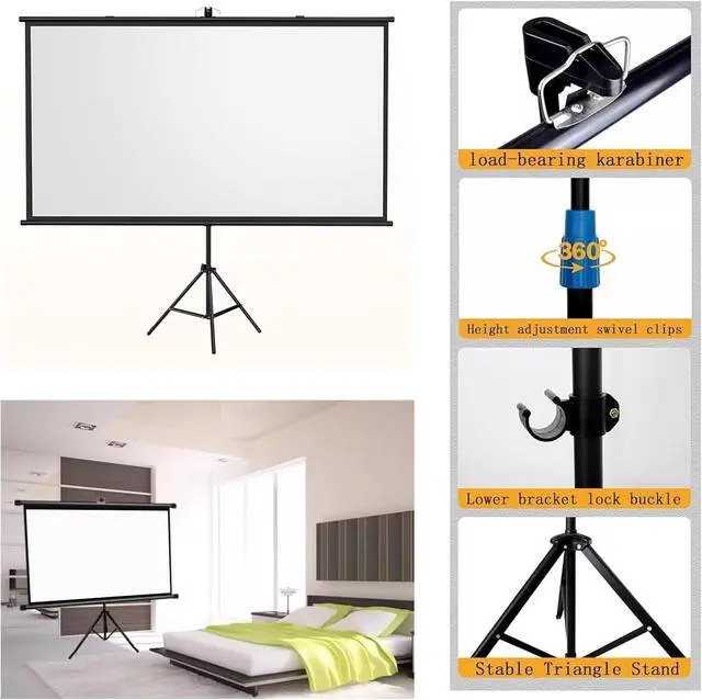 Projection Screen with Stable Tripod: The lightweight projection screen is assembled from a stable tripod support with wide legs, giving you a reliable, safe and comfortable experience. , can be easily moved to different locations to meet various needs.