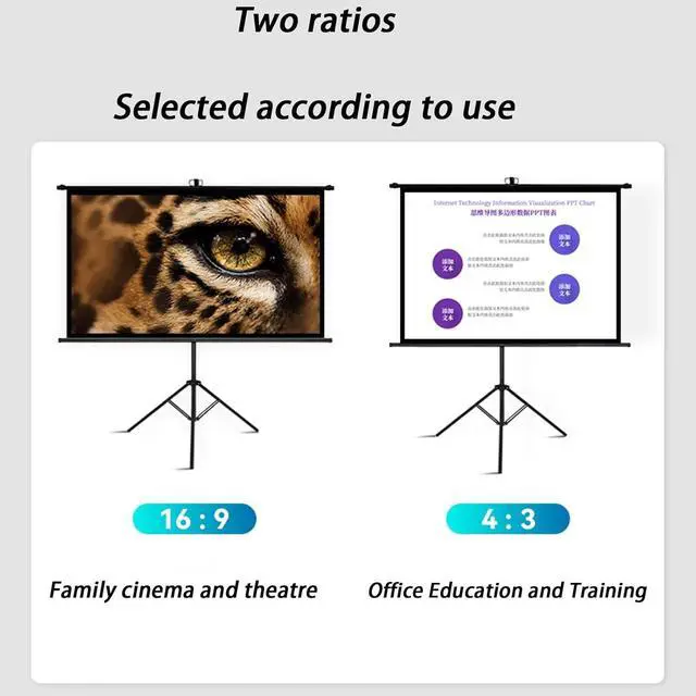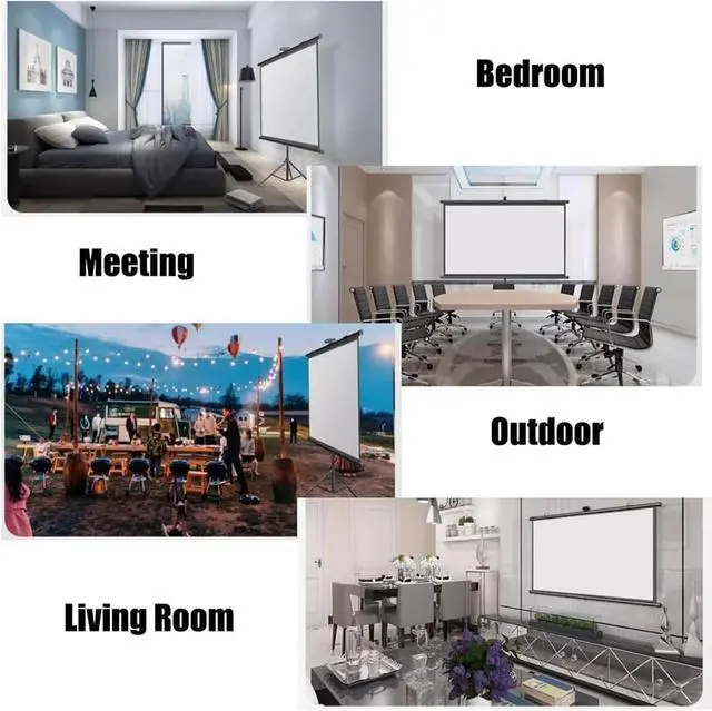 USE ANYWHERE: Standing and wall-mounted, the versatile portable projection screen can be mounted on the wall, providing a variety of placement options. Ideal for outdoor movies, indoor movie viewing parties, and classroom and office presentations