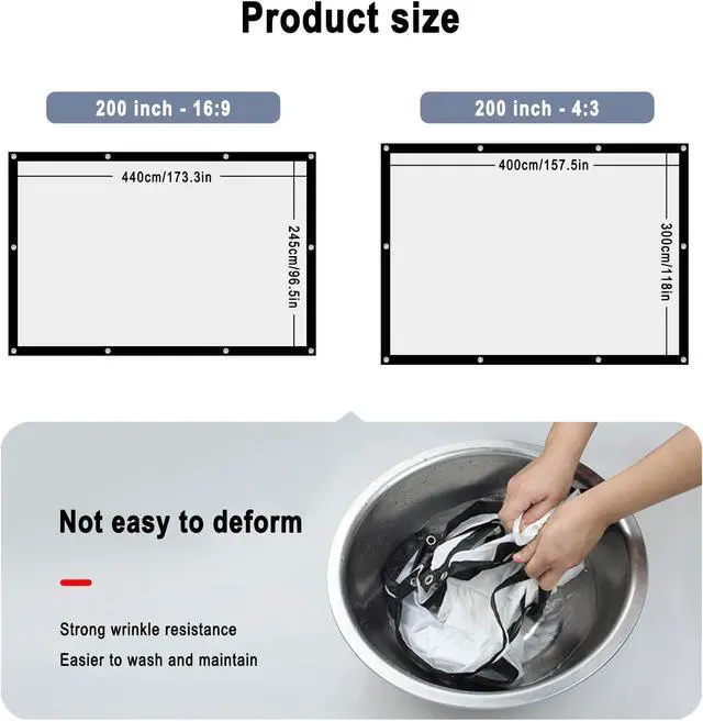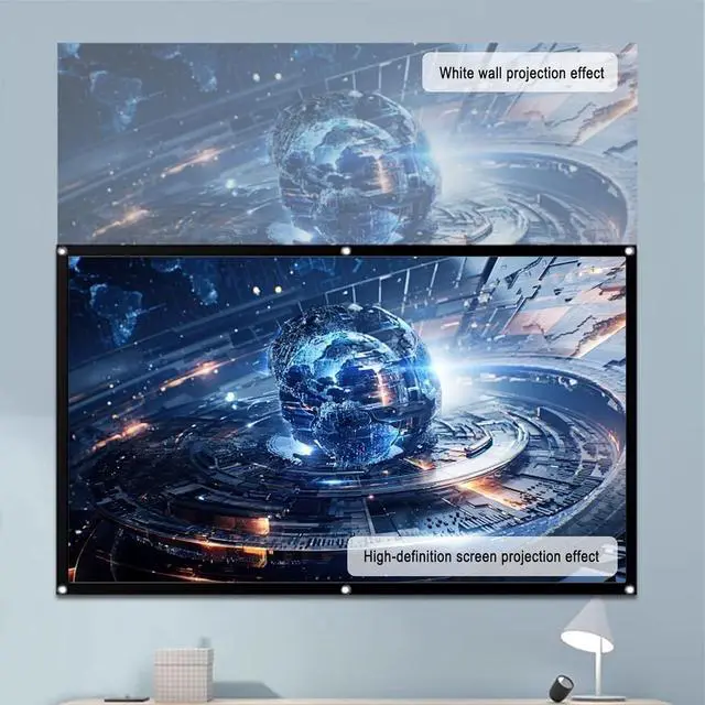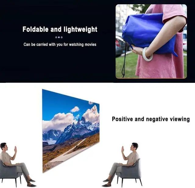 Thick and durable: Home Theater Movie Screen HD Projection Screen, Made of thickened canvas, it is thicker and more durable than other materials, not easy to wrinkle, with clearer display and durable, and you can enjoy the cinema-like projection effect