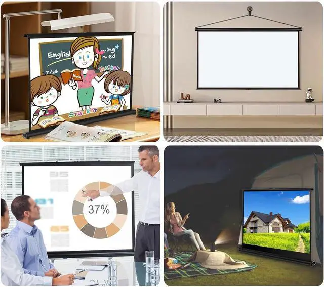 The portable projection screen is easy to store and lightweight, with a retractable design and a storage bag that makes it easy for people to carry it out, put it into a backpack or suitcase, and take it anywhere with the storage bag.