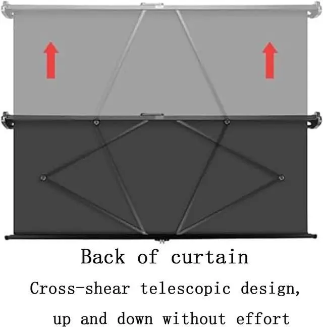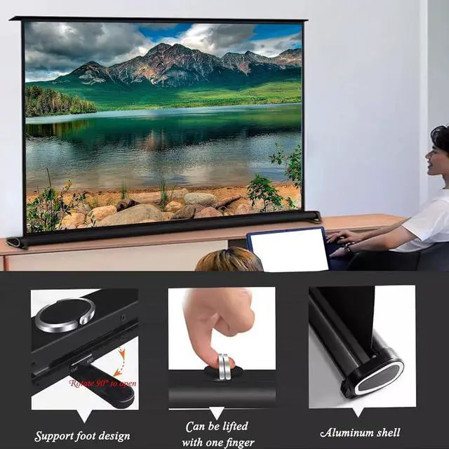 The casing of the projection screen is made of aluminum, with a compact design, beautiful appearance, lightweight body, and bottom support feet that allow the screen to stand on any type of flat ground or table.