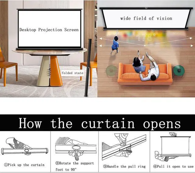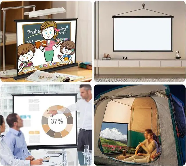 The projection screen features 30in/40in/50in (diagonal) and 16:9/4:3 screen ratio, whether you're watching your favorite movies, sporting events, or delivering impactful presentations, this screen guarantees images Clear, vivid and realistic.