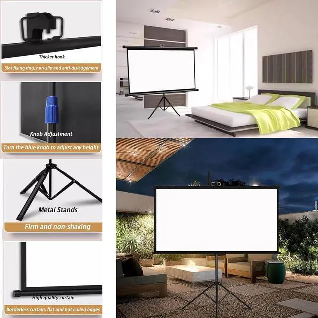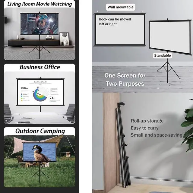 The projection screen supports 4K high definition: the projection screen with a stand has a 60" and 72" diagonal display area, allowing more people to enjoy blockbusters together. Two ratios, choose according to use: 16:9 rectangular ratio is suitable for home use, and 4:3 square ratio is suitable for office use