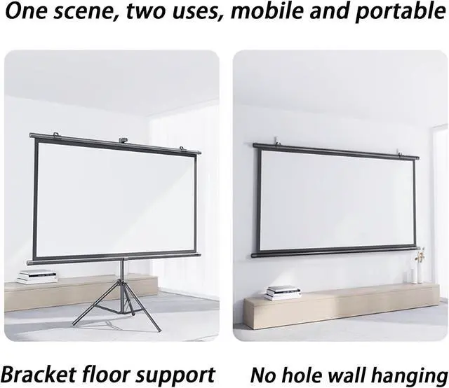 Two ways to use: The video projection screen adopts a detachable design, can be installed on the wall, can be supported by a bracket, is easy to store, is mobile and portable, and can be stored when not in use. About installation: Make sure to install it in a flat and stable place.