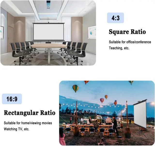 Widely used: With two screen ratios of 4:3 and 16:9, you can easily use it on occasions such as family travel, camping or backyard movie nights, and enjoy a high-definition viewing experience anytime, anywhere