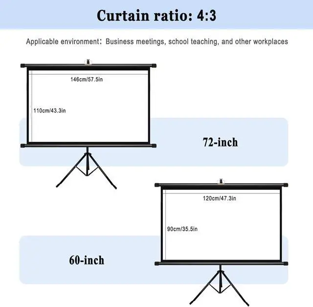 Stable and non-shaking: 60" 72" Portable Home Theater Movie Screen, The sturdy metal bracket provides a firm support for the screen and can be used in different scenes. The lower support buckle on the bracket can make the projection screen less likely to shake during use, and the height of the screen can be adjusted according to needs