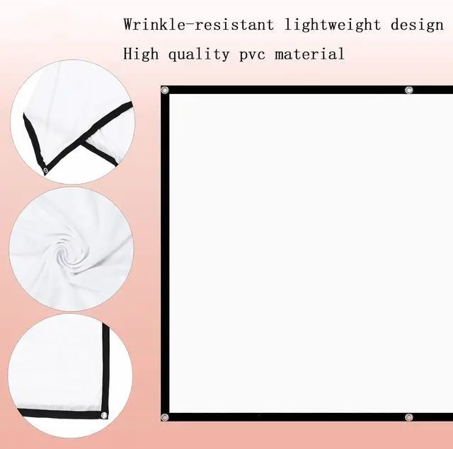 The movie projection screen is foldable and wrinkle-free, making it very convenient to carry and store. You can take it with you and install it anywhere without worrying about wrinkles or creases.