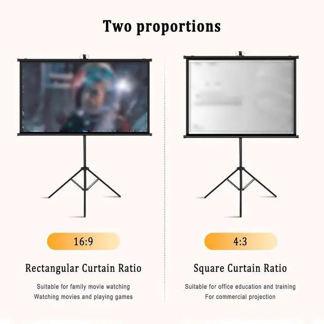 Curtain Ratio: HD Wrinkle-Free Tripod Screen for Projector, 4:3, 16:9 two structure design, with a different visual experience, 160 ° wide viewing angle, not only suitable for home viewing, meetings, office, teaching is also applicable