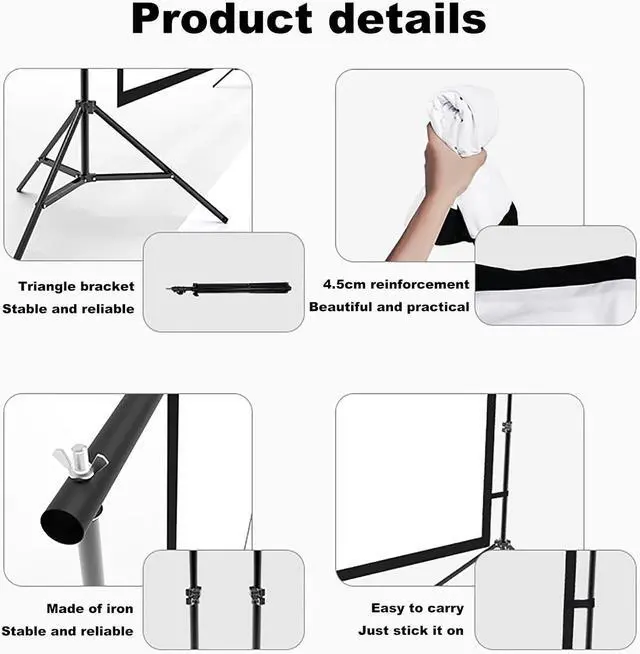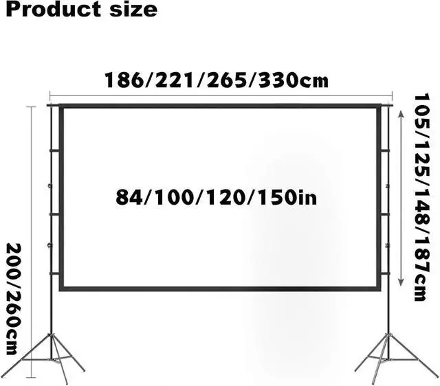 Stable bracketThe projector screen bracket consists of a stable tripod and a wide-leg bracket, which is not easy to break. The tripod is lightweight and detachable, and the height can be adjusted using the handle on the bracket.