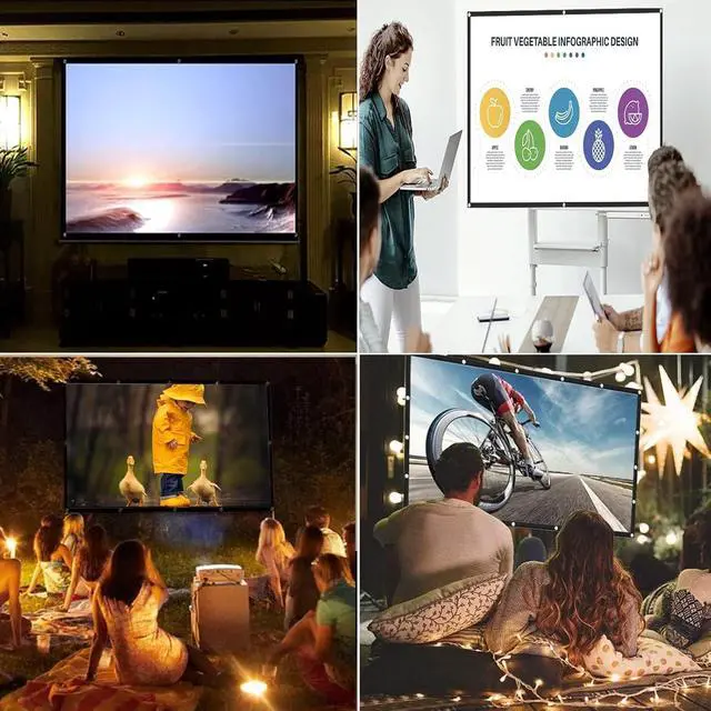Portable projection screens are widely used and can be used for home theaters, classroom training, conference room presentations, public displays, etc. Suitable for outdoor camping movies and open-air cinemas.