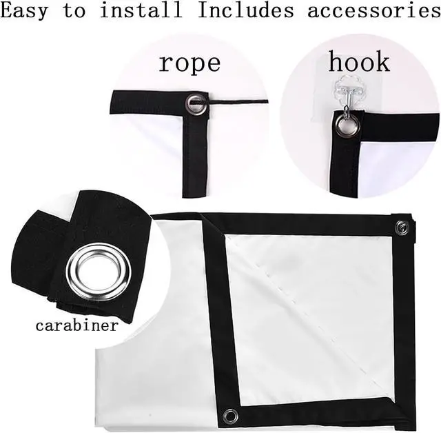 Package includes: projection screen x1, hook, lanyard